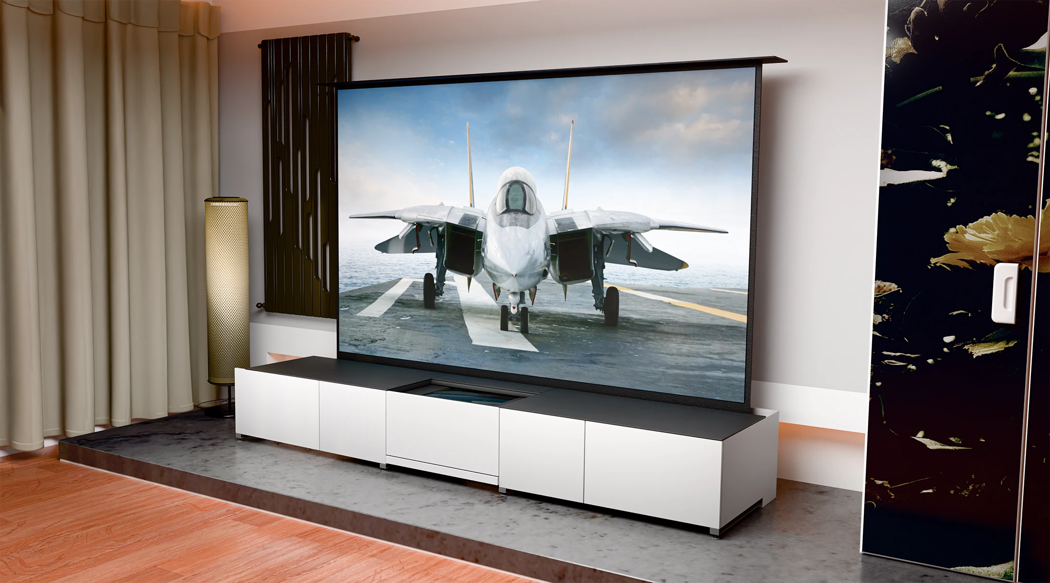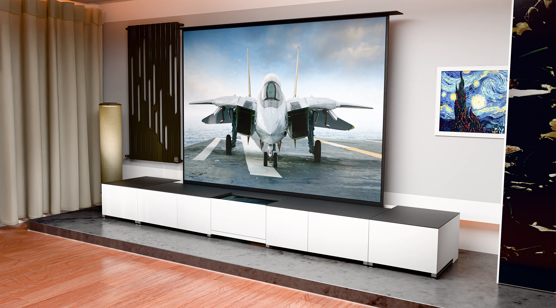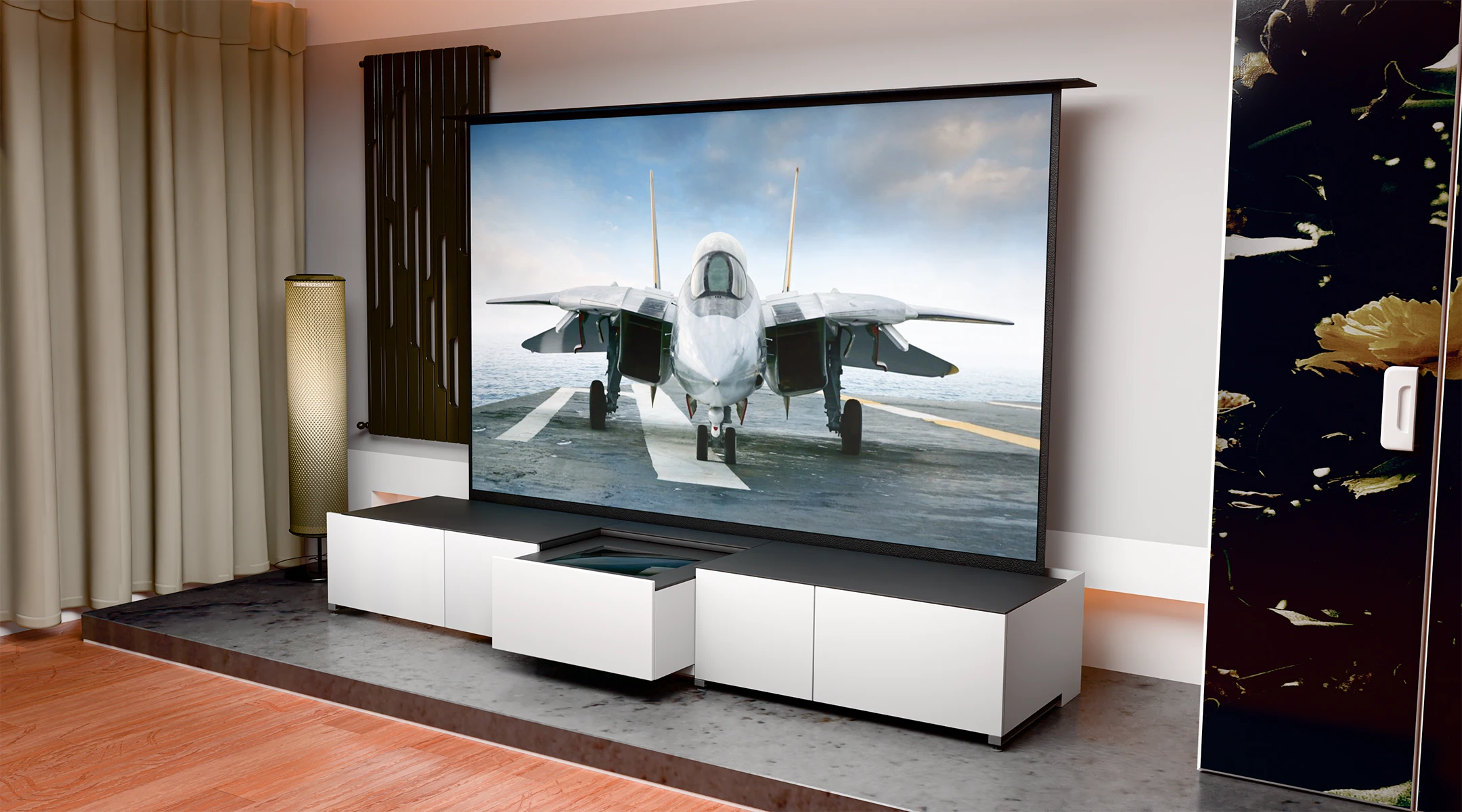 The Ares ust projector cabinet is a work of art. Designed and crafted in our exclusive factory, it’s the original ultra-short throw projector cabinet. There are no imitations—just pure, unmatched luxury. With exquisite attention to detail, Ares redefines the home theater experience. It is built just for you, using the best materials and the most impeccable finish. Every aspect of our media console cabinet speaks to your exceptional taste.Why Choose a Short Throw Projector Stand?